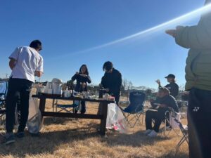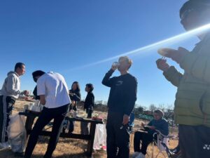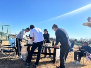 BBQ🍖では、今西コーチのお父様から受け継いだ秘伝の焼肉のタレ(これがまた絶品)やキムチでご参加の皆さん笑顔満載でした。
